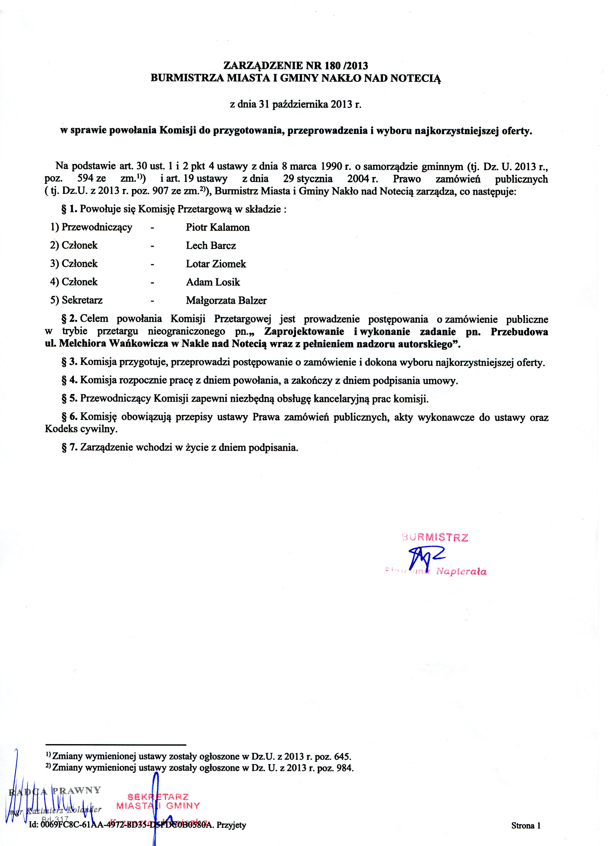Zarządzenie Burmistrza Miasta i Gminy Nakło nad Notecią