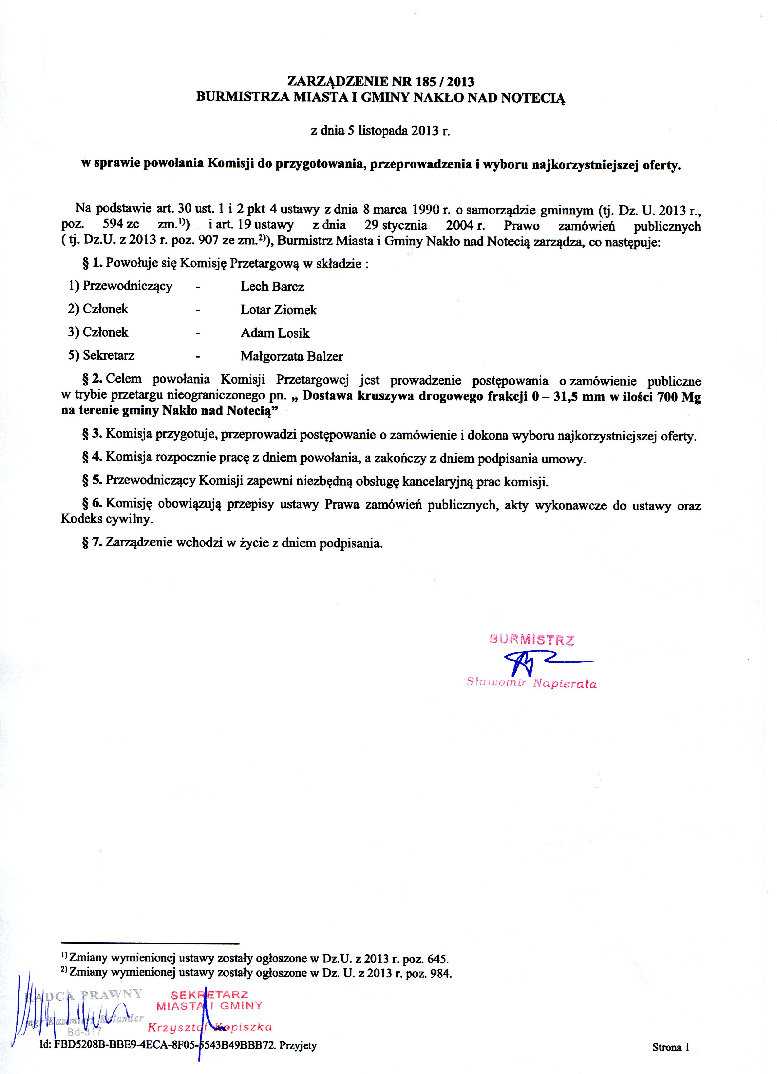 Zarządzenie Burmistrza Miasta i Gminy Nakło nad Notecią
